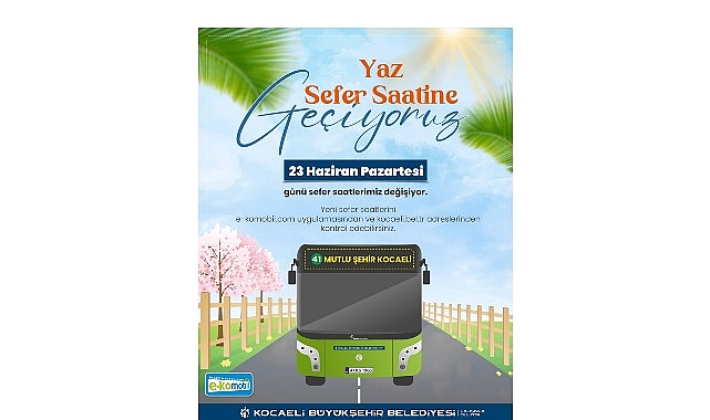 Kocaeli Büyükşehir Belediyesi, 23 Haziran Pazartesi gününden itibaren otobüs ve tramvaylarda yaz sefer saati uygulamasına geçiyor....