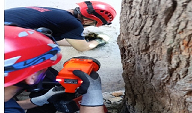 İzmir İtfaiyesi havalandırma bacasına sıkışan kediyi kurtardı