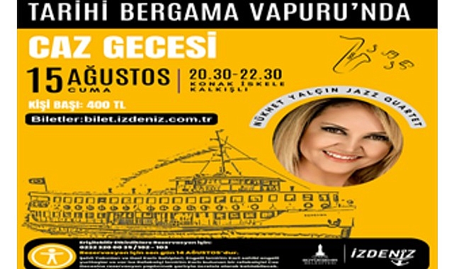 İzmir Büyükşehir Belediyesi iştiraklerinden İZDENİZ’in, Tarihi Bergama Vapuru etkinlikleri Caz Gecesi ile devam ediyor....